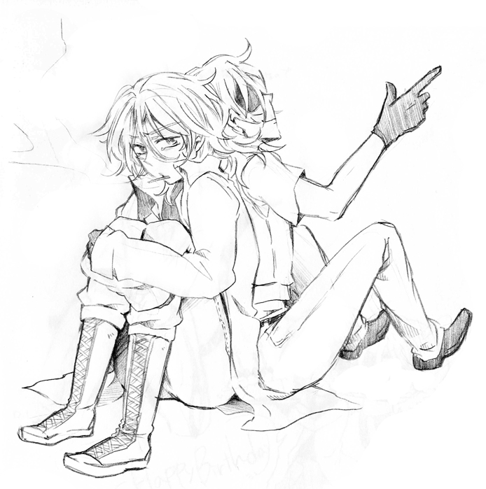 ------------------------------------------------------------------------ 原作ニルライは背中合わせなイメージです。 背中合わせは可哀相なんで、うちのニルライはひたすら正面からむぎゅーっと!^^ 本当はお互いに求め合ってたのに、振り向くことができなかった切ない兄弟…:; ニルライを幸せにしたいね!!