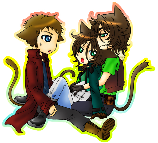 ------------------------------------------------------------------------ カタロン幹部のモミアゲ猿なんて、断固許しません!!この三人を密室に放置してみたい^^これはクラ→ライ←ニルでお願いします(笑) 今回の反省点・制服のズボンの色逆じゃないかな(万死!)